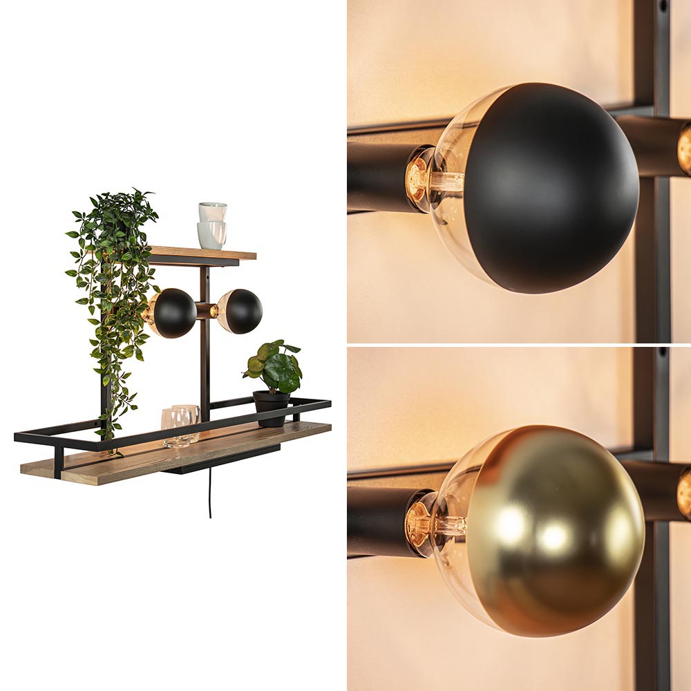 Sfeervol, decoratief en functioneel. Deze wandlamp is van meerdere markten thuis. De wandlamp / wandplank biedt ruimte om spullen op te bergen of leuke accessoires neer te zetten op de 2 planken. Het armatuur van de wandlamp is verder voorzien van 2 E27 fittingen en een snoer met een lengte van 150 cm. De wandlamp is een ideale toevoeging aan een hal of keuken. De wandlamp wordt geleverd exclusief lichtbronnen.