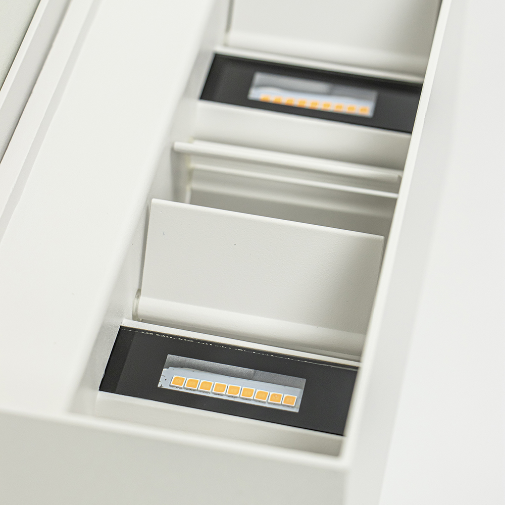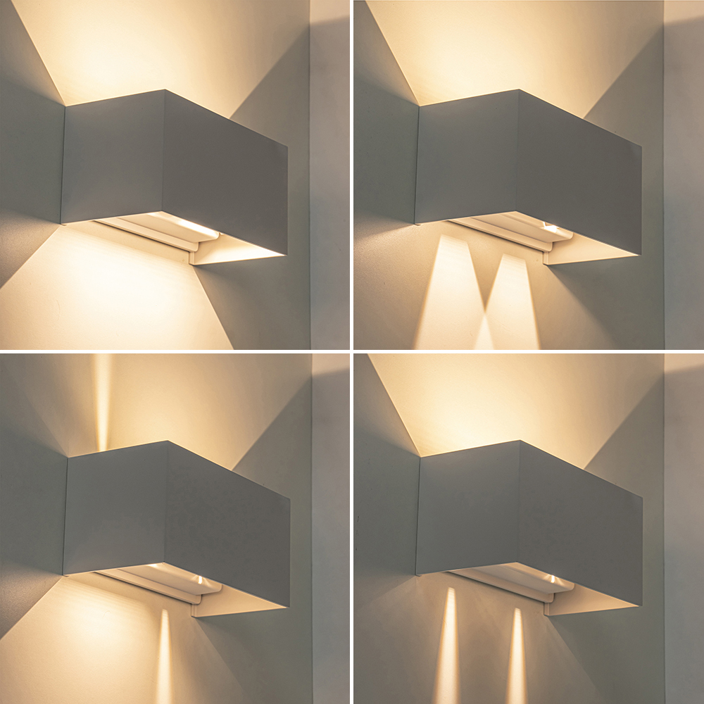 Een strak design met een groots effect. Met deze moderne wandlamp bepaald u namelijk zelf de lichtverspreiding. De wandlamp is voorzien van 4 LED lichtpunten die dmv klepjes zijn te stellen. Hoe verder de klepjes open staan hoe meer licht de lamp verspreid. Zo kunt u spelen met alle mogelijkheden en een mooi schouwspel aan licht creëren op de schutting, schuur of de woning zelf. De wandlamp is uitgevoerd in het wit, is IP54 goedgekeurd en is dimbaar middels een externe dimmer (exclusief).