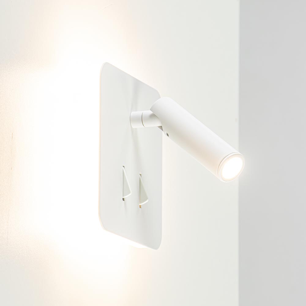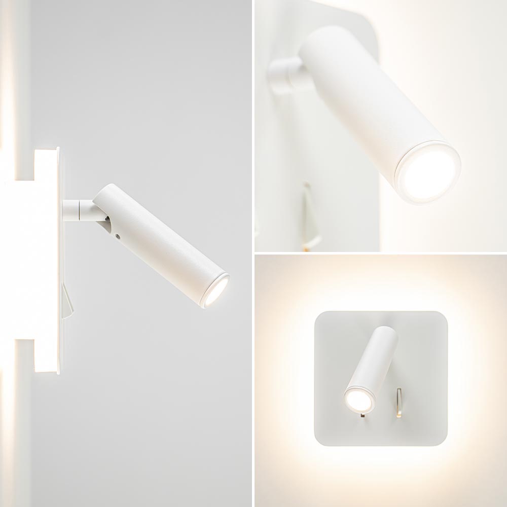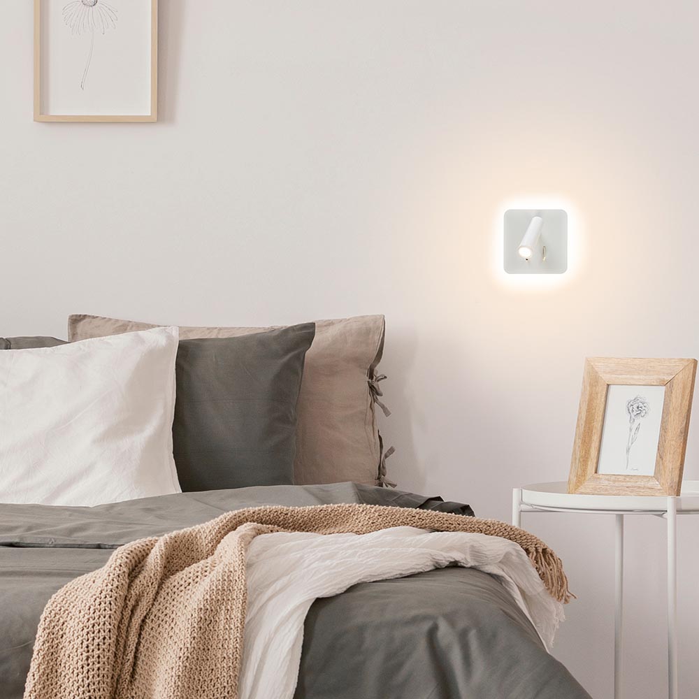 Een kleine wandlamp met een grote functie. De vierkante wandlamp is voorzien van twee soorten verlichting, namelijk de verstelbare spot en indirecte verlichting. Beide lichtpunten zijn LED zodat de wandlamp energiezuinig is. Door de twee soorten verlichting is de witte wandlamp een ideale bedlamp. De indirecte verlichting zorgt voor een mooie verspreiding over de muur en de verstelbare spot zorgt dat u net even wat fijner kunt lezen in bed. De verlichting is los van elkaar te bedienen door middel van de twee schakelaars op de wandlamp. De moderne wandlamp is niet voorzien van een snoer en dient dan ook direct op een stroompunt te worden aangesloten.