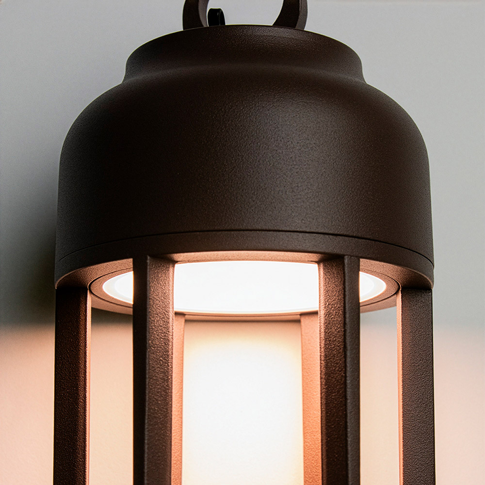 De Wells is een oplaadbare binnen/buiten wandlamp in roestbruine afwerking. Je bedient hem direct op de lamp via de touch-dimmer en wisselt kleurtemperatuur in stappen (2700K ↔ 4000K). Dankzij IP54 is hij geschikt voor gevel, terras of overkapping. Het cilindervormige ontwerp (Ø 10 cm, H 22,2 cm) geeft rondom diffuus, sfeervol licht.