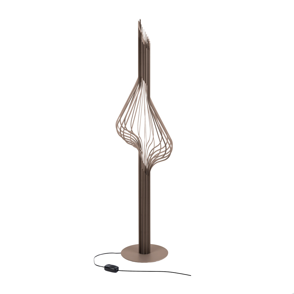 De Elba vloerlamp van Ztahl is een echte blikvanger waarin design en verlichting naadloos samenkomen. Het open, organische frame bestaat uit elegante metalen lijnen die zich rondom de centrale lichtbron vormen. Dit zorgt voor een bijzonder lichtspel en een warme, sfeervolle uitstraling in de ruimte.