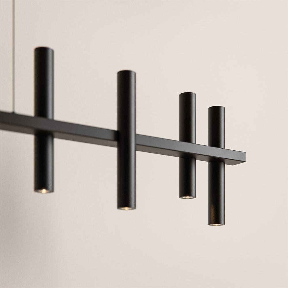 De Stelvio van Ztahl is een moderne eyecatcher voor boven je eettafel of kookeiland. Deze 10-lichts lamp combineert een minimalistisch ontwerp met een hoogwaardige afwerking in platinum. Het lijnenspel van verticale cilinders op een horizontale balk zorgt voor een grafische en evenwichtige uitstraling in elk interieur.