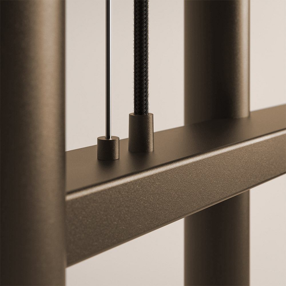 De geïntegreerde LED-verlichting verspreidt een warm, gericht licht naar beneden — perfect voor zowel sfeer als functionaliteit. Dankzij het open ontwerp blijft de ruimte licht en luchtig, terwijl de lamp toch een duidelijk statement maakt. Combineer hem met een externe LED-dimmer voor optimale controle over de lichtintensiteit.