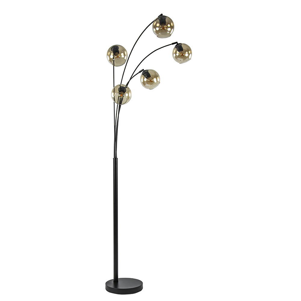 Moderne Vloerlamp – Mat Zwart – 5-lichts – Amber Glas
