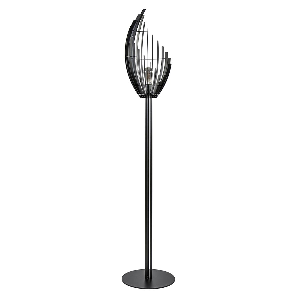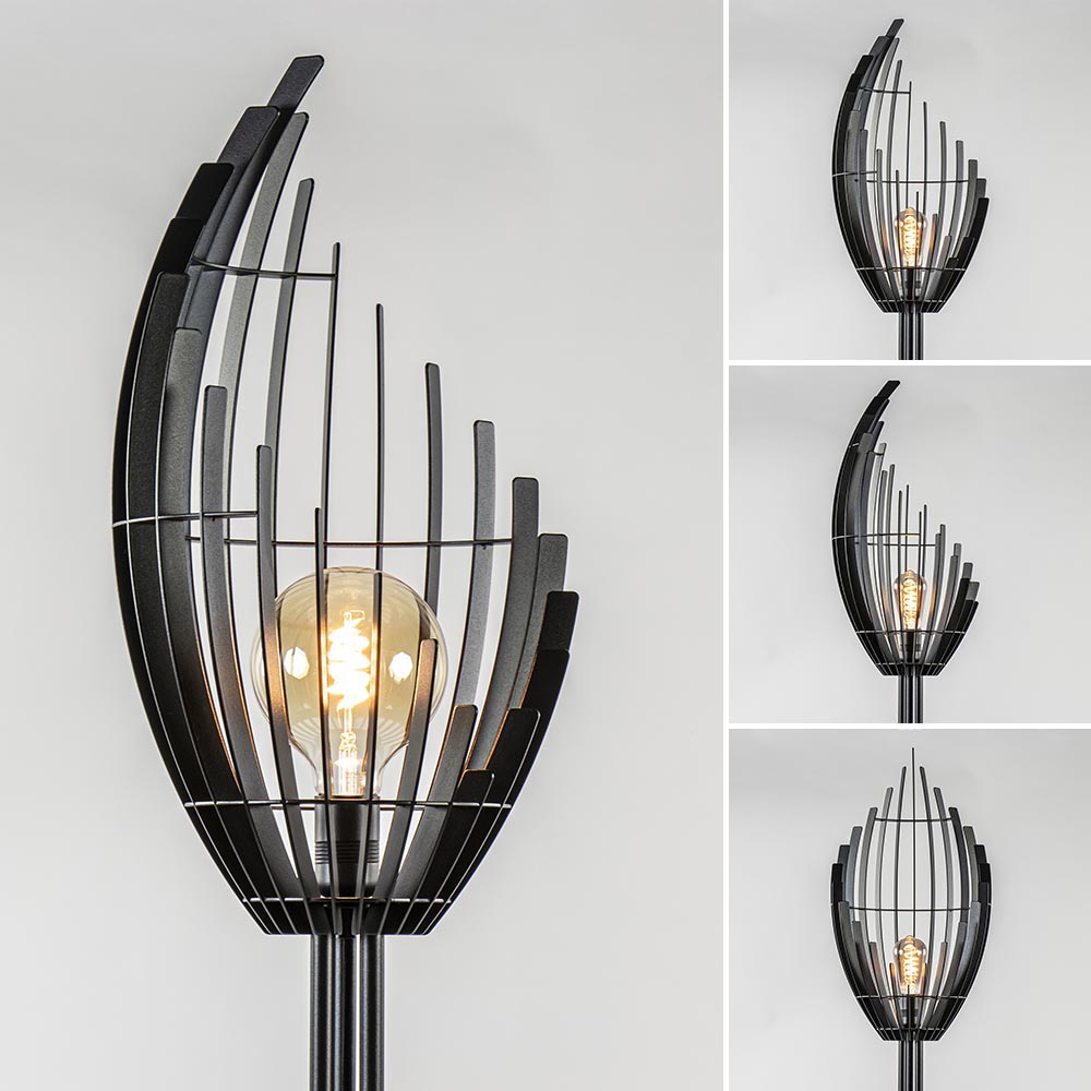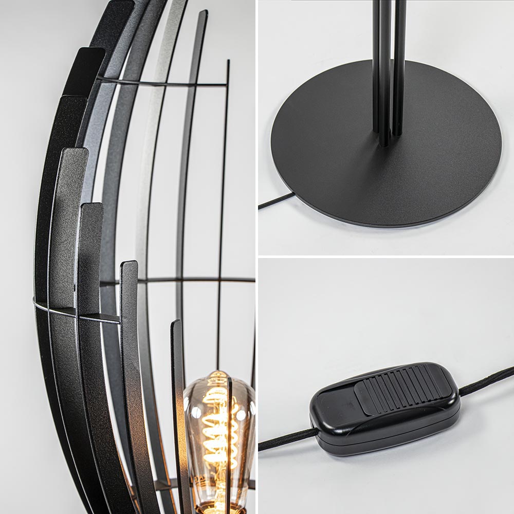 Een prachtig design met een rauw randje. Deze stoere vloerlamp is volledig gemaakt van metaal en voorzien van een zwarte finish. De lamp bestaat uit een ronde voet met daarop 3 metalen pijpen. Deze ondersteunen de robuuste kap die een speelse look heeft. De kap heeft metalen lamellen die verspringen waardoor de kap er vanuit iedere hoek anders uitziet. Een stoer design dat mooi past in een industriële of design woontrend. De zwarte staande lamp is voorzien van een snoer met dimmer. De lengte van het snoer is 210 cm, de dimmer bevindt zich op 50 cm van de voet.
