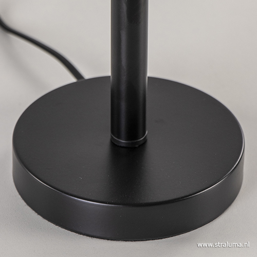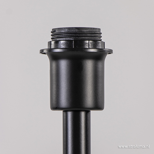 Een mat zwarte minimalistische lampvoet die geschikt is voor diverse woonstijlen. De tafellamp wordt geleverd exclusief kap welke bepalend is voor de uitstraling van de lamp. Door het matte zwart past vrijwel iedere kleur kap op de voet en is er makkelijk een leuke combinatie te maken. De zwart metalen voet is voorzien van een E27 fitting en wordt geleverd inclusief zwart snoer van 180 cm.