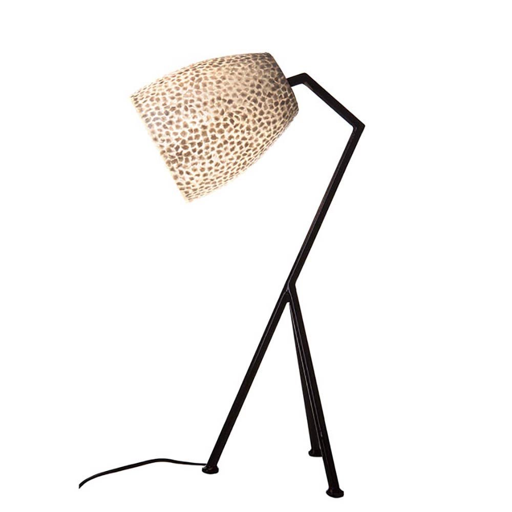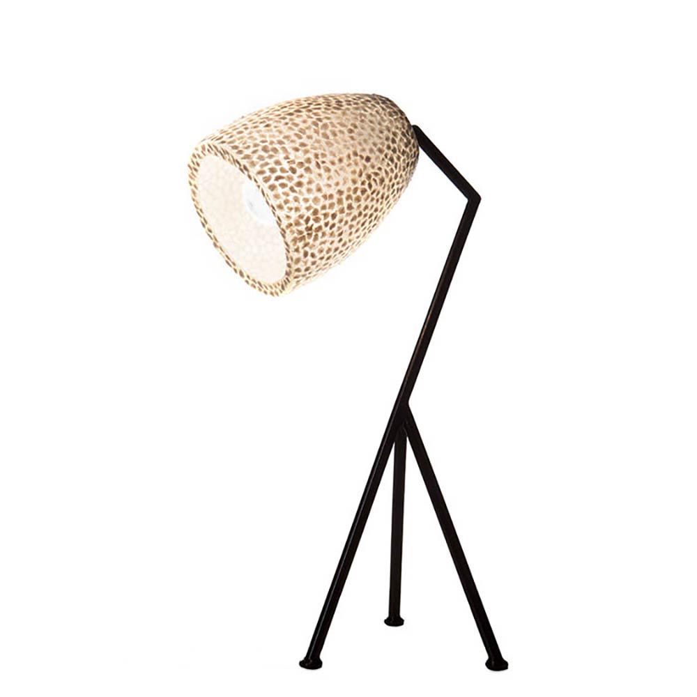 Een leuke en sfeervolle toevoeging op een kast of dressoir. Deze driepoot tafellamp heeft een zwart metalen voet die de schelpen kap ondersteund. De kap is gemaakt van gebroken stukjes capiz schelpen die op een fiberglas mal worden gelegd. Dit zorgt ervoor dat de kap een sfeervol effect geeft wanneer de lamp wordt ingeschakeld. De kap is voorzien van witte/parelmoer schelpen die de kap een frisse lichte uitstraling geven. De sfeervolle schelpen tafellamp is voorzien van een zwart snoer van 170 cm, met een schakelaar op 50 cm van de lamp. De schelpenlamp is te combineren in diverse woonstijlen als beach, landelijk, bohemian of Oosters. De zwarte tafellamp met schelpenkap wordt geleverd zonder lichtbron (E27).