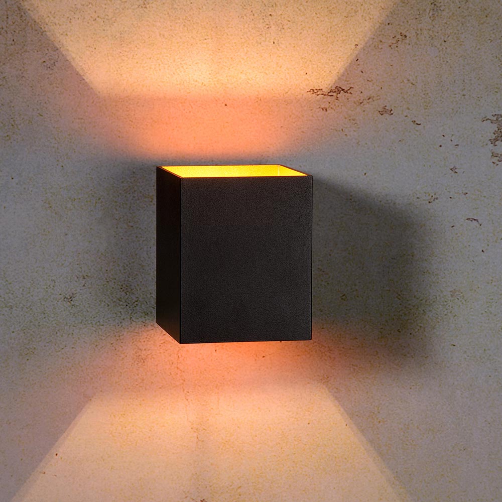 / Lampen / Bedlampjes / Zwarte-gouden wandlamp Xera vierkant