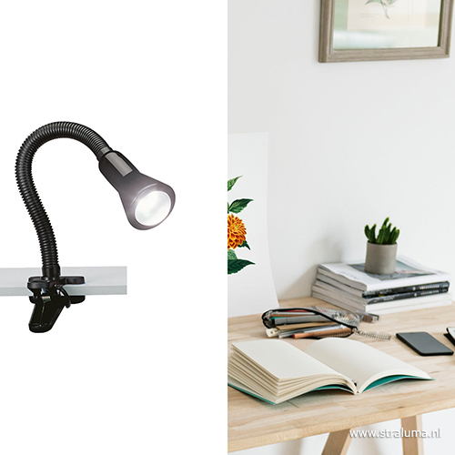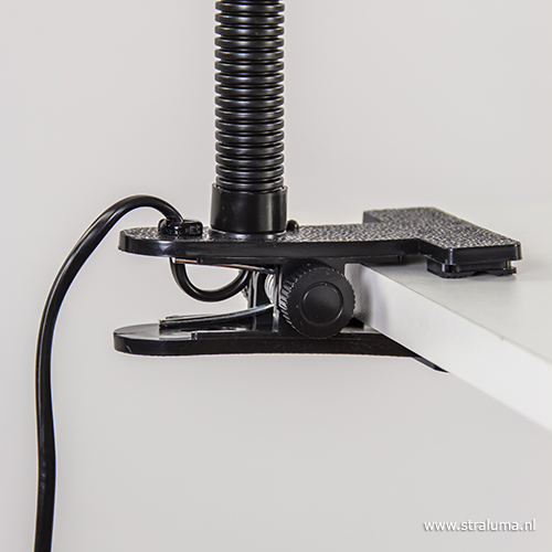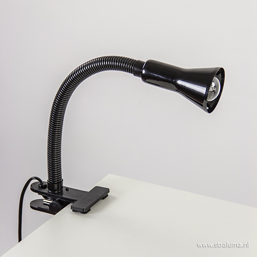 Deze klemlamp heeft een knijpwijdte van 3 cm waardoor de functionele lamp gemakkelijk kan dienen als bureau-, tafel- of leeslamp. Door de flexibele arm schijnt de klemspot altijd de gewenste richting op. De klemlamp is voorzien van een zwart snoer met schakelaar en is verkrijgbaar in 4 kleuren, wit, zwart, zwart/zilvergrijs en rood/blauw/groen. Handig voor op het bureau, in de tienerkamer, als bedlampje of in de kinderkamer.