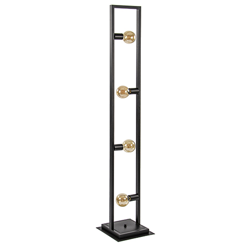 Wat een topper! De zwart metalen vloerlamp is een mooi object om te zien, zowel in als uitgeschakeld. De lamp is gemaakt van een metalen frame en is afgewerkt in een mooie mat zwarte finish. De lichtpunten zitten trapsgewijs boven elkaar wat een mooie verdeling over de lamp geeft. Het frame wordt ondersteund door een vierkante voet die is voorzien van een zwart snoer met voetschakelaar. Van belang is de keuze van de lichtbron, deze is bepalend voor de sfeer van de lamp. De zwart vloerlamp combineert mooi in een modern, landelijk of industrieel interieur.