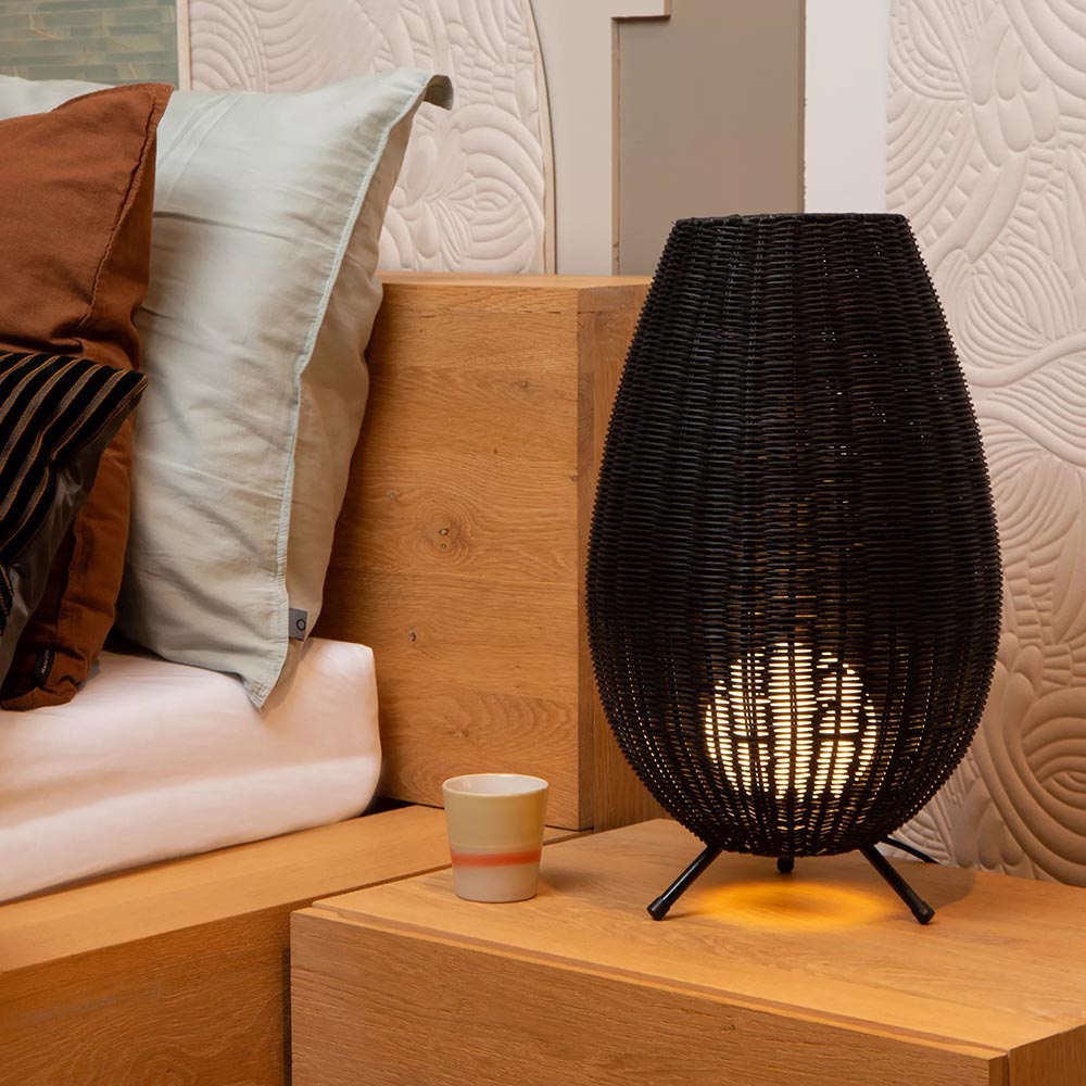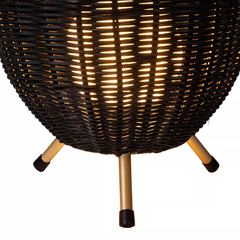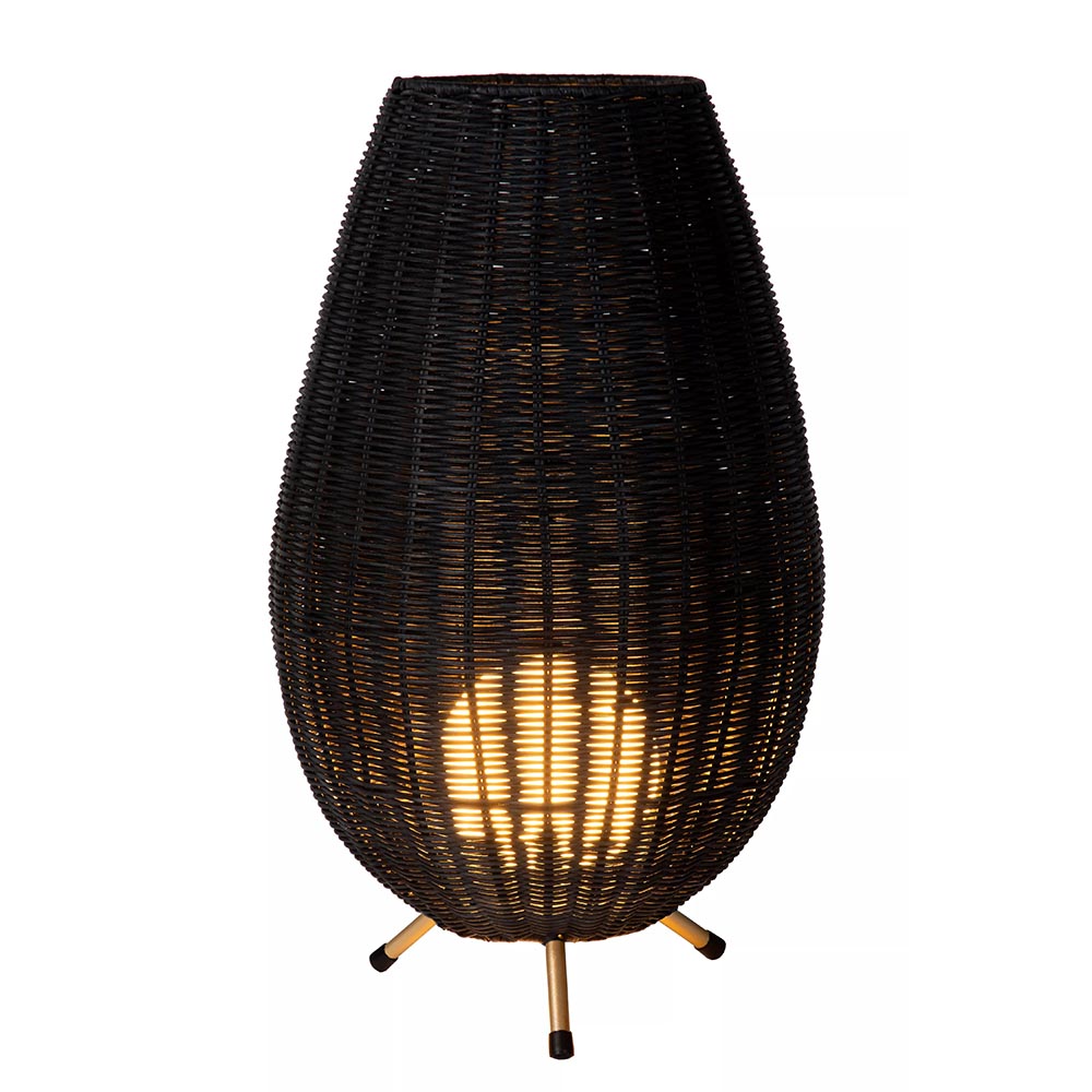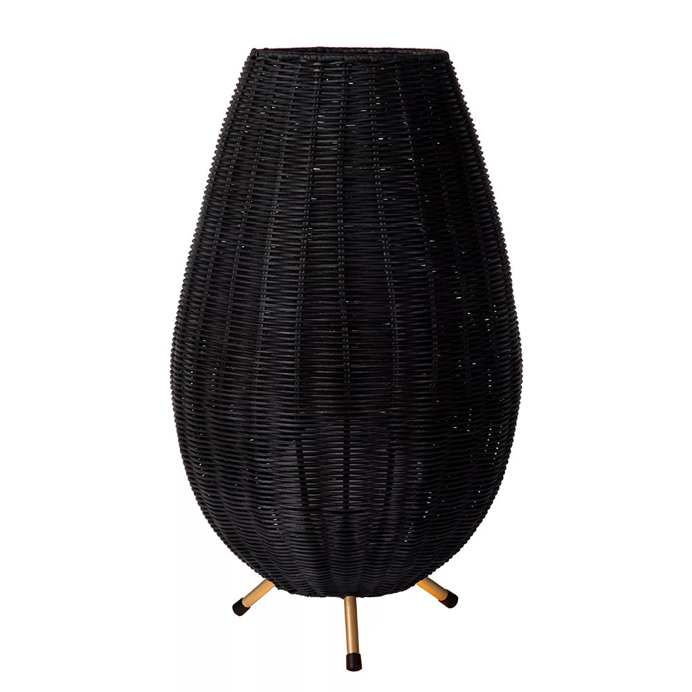 Sfeervol en helemaal trendy. Natuurlijke materialen doen het goed in het interieur en zo ook deze rotan tafellamp. De driepoot tafellamp is uitgevoerd in het zwart met gouden pootjes voor een extra trendy look en feel. Binnenin de rotan kap is de lamp afgewerkt met een witte glazen bol met daarin een G9 fitting. Het witte glas licht mooi op wanneer de lamp wordt ingeschakeld en zorgt voor een leuk effect in de rotan kap. De trendy tafellamp is voorzien van een zwart snoer met knipschakelaar van 150 cm. De lichtbron is exclusief.