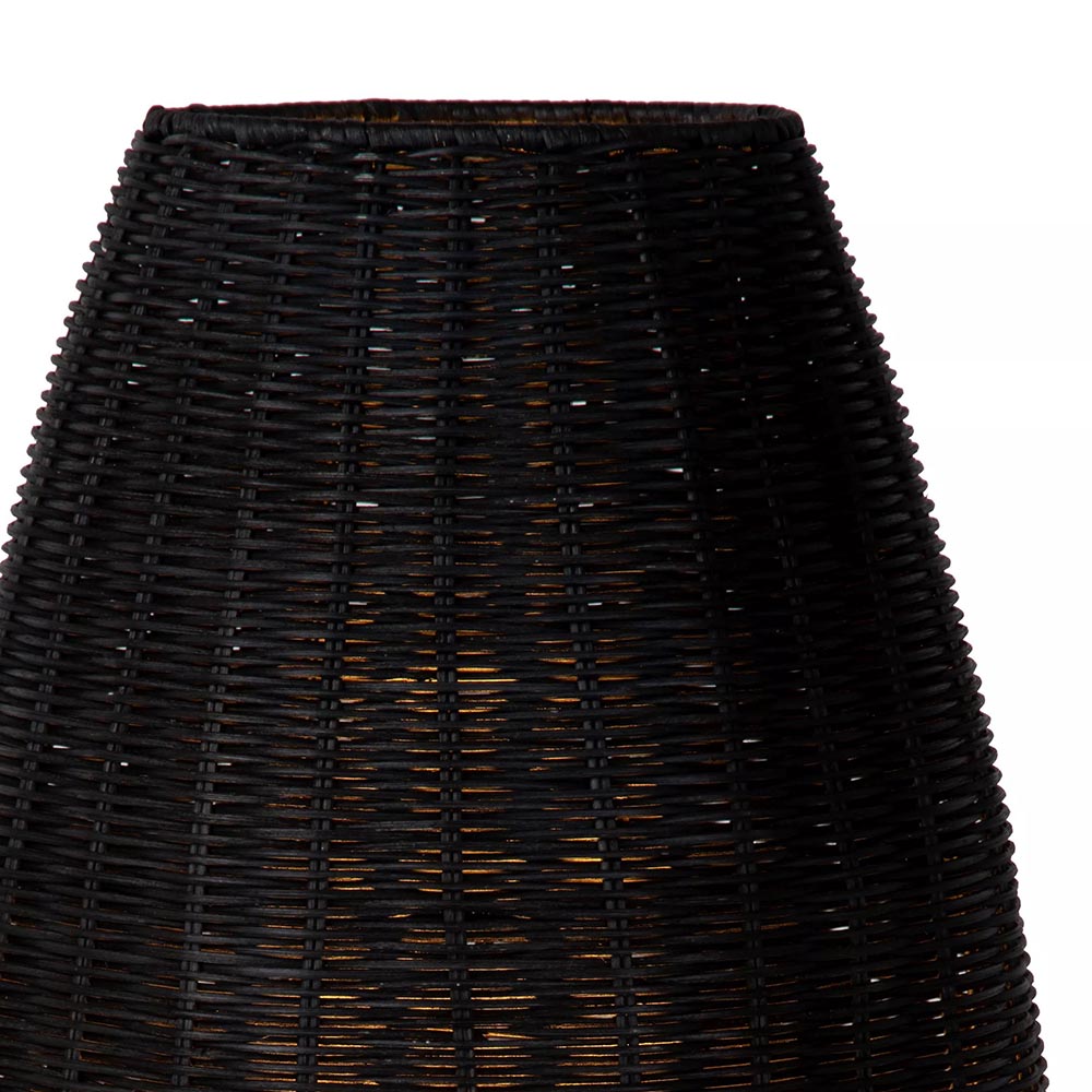 Zwarte rotan tafellamp met gouden driepoot