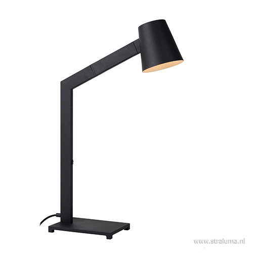 Deze moderne tafellamp is een mooie musthave voor in huis. De design lamp oogt simplistisch maar kan meer dan het eerste oog doet denken. Naast dat de lamp een strak modern design heeft is de lamp ook te stellen zonder dat dit goed zichtbaar is. De arm van de tafellamp is namelijk op twee plekken te buigen met onzichtbare scharnieren. Dit zorgt dat de lamp goed te verstellen is en prima kan werken als leeslamp op het bureau. Ook geeft dit de lamp een speels effect. De lamp heeft verder een zwarte rechthoekige voet met kleine pootjes en een zwart stang waar de aan/uit schakelaar is in verwerkt. De lamp is geschikt voor LED lichtbronnen.